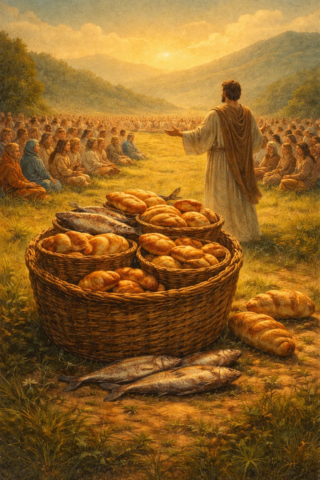 Later, Jesus feeds the four thousand. This time, the setting points toward a Gentile crowd. When the disciples gather what remains, there are seven baskets left over.